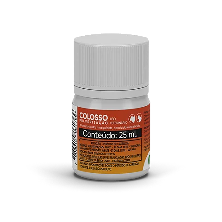 Colosso é um medicamento veterinário usado para o controle de ectoparasitas em bovinos, suínos e em ambientes. É eficaz contra carrapatos, bernes, moscas, piolhos e sarnas, e pode ser aplicado por pulverização ou imersão. É seguro para uso em animais, incluindo vacas gestantes, mas deve ser aplicado sob orientação veterinária.