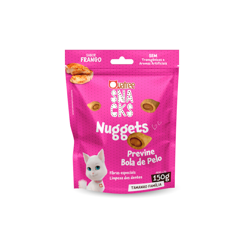 Quatree Snacks Nuggets Previne Bolas de Pelo para Gatos Adultos Sabor Frango – 150g